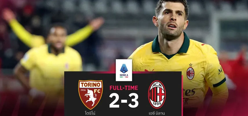 ผลบอล โตริโน่ 2-3 เอซี มิลาน| พูลิซิช เหมาสอง! ปีศาจแดงดำทะยานนำจ่าฝูง เซเรียอา