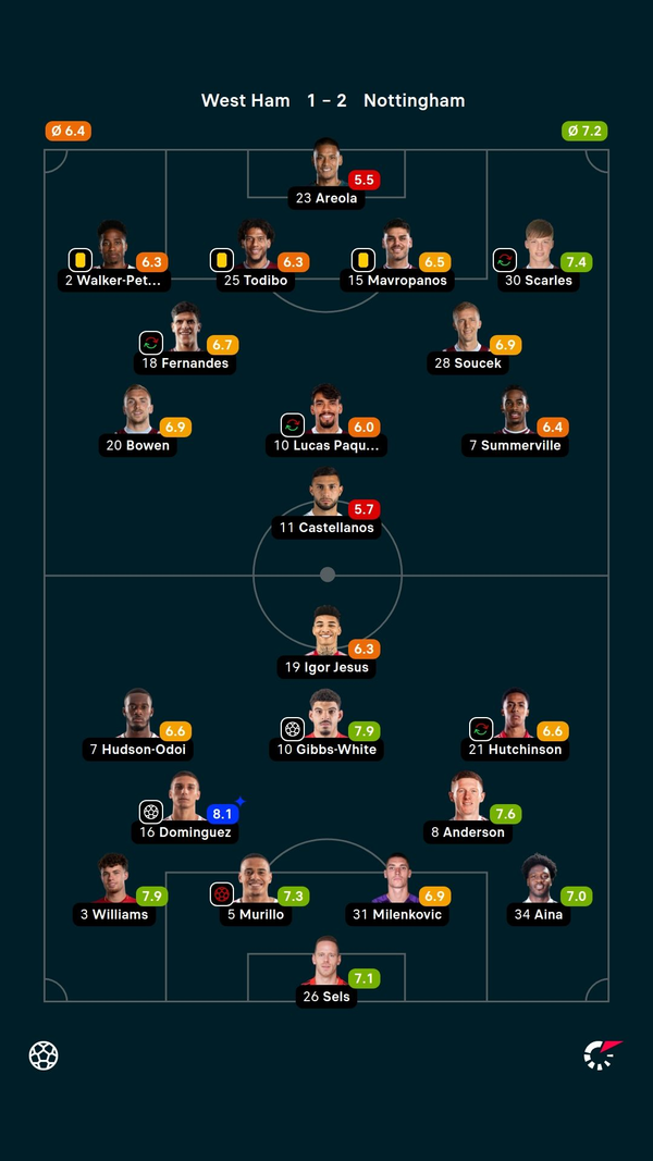 ผู้เล่นที่หวังติดทีมชาติในฟุตบอลโลกก้าวขึ้นมาเพื่อปิดชัยชนะกลับมาของฟอเรสต์ สร้างระยะห่างที่สำคัญ 7 คะแนนระหว่างพวกเขากับเวสต์แฮมที่พ่ายแพ้ ซึ่งตอนนี้ชนะเพียง 2 จาก 14 นัดล่าสุดในพรีเมียร์ลีก (เสมอ 3, แพ้ 9) – ลำดับที่ดูเหมือนจะเกือบกำหนดชะตาของทีมในโซนตกชั้นแล้ว แม้ว่าการแข่งขันฤดูกาล 2025/26 จะผ่านไปเพียงครึ่งทางเท่านั้น