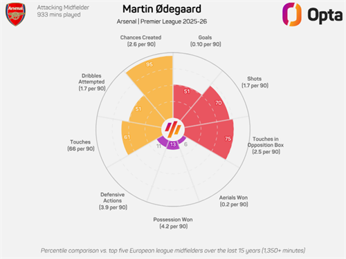 เรดาร์ชาร์ตของมาร์ติน เออเดอการ์ด - พรีเมียร์ลีก 2025/26