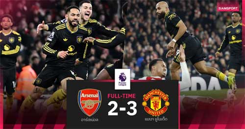 ทว่า ปีศาจแดง เฮสนั่น 3-2 นาที 87 บรูโน่ แฟร์นันด์ส จิ้มสั้น ค็อบบี้ เมนู แตะเร็วให้ มาเตอุส คุนญ่า ตัวสำรองจัดการปั่นโค้งหนีมือนายด่านปืนเสียบตาข่ายคมกริบ จบเกม แมนฯ ยูไนเต็ด บุกชนะ อาร์เซน่อล 3-2 "ปีศาจแดง" ยัดเยียดความปราชัยในบ้านนัดแรกแก่ "ปืนใหญ่" หยุดแต้มจ่าฝูง มีเพิ่มเป็น 38 คะแนนแซง เชลซี ขึ้นยึดที่ 4