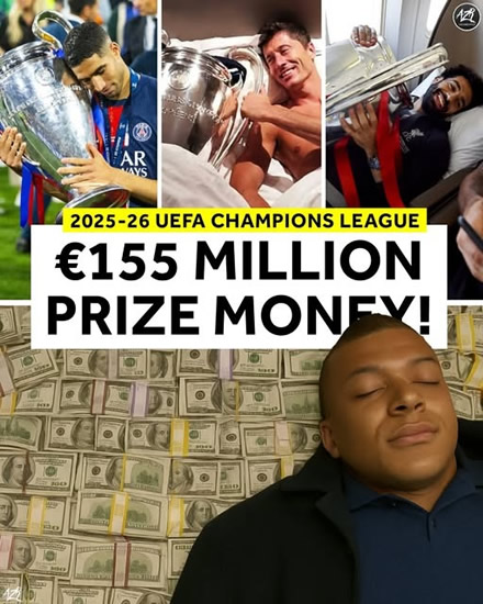 ผู้ชนะยูฟ่าแชมเปียนส์ลีก ฤดูกาล 2025/26 จะได้เงินมากกว่าผู้ชนะใดๆ ในประวัติศาสตร์!