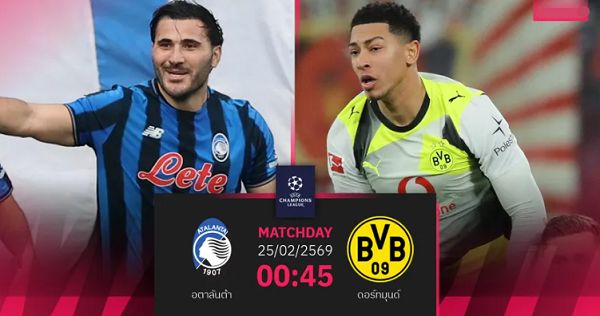 7M-วิเคราะห์บอล อตาลันต้า vs โบรุสเซีย ดอร์ทมุนด์ 25 ก.พ. 69 : เจ้าบ้านต้องชนะสามประตูเพื่อผ่านเข้ารอบ