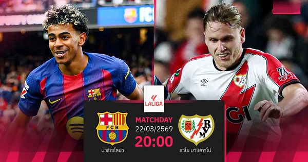 7M-วิเคราะห์ฟุตบอล ลา ลีกา สเปน 22 มีนาคม 2569 : บาร์เซโลน่า เปิดรังรับมือ ราโย บาเยกาโน่ ลุ้นขยายช่องว่างจ่าฝูง