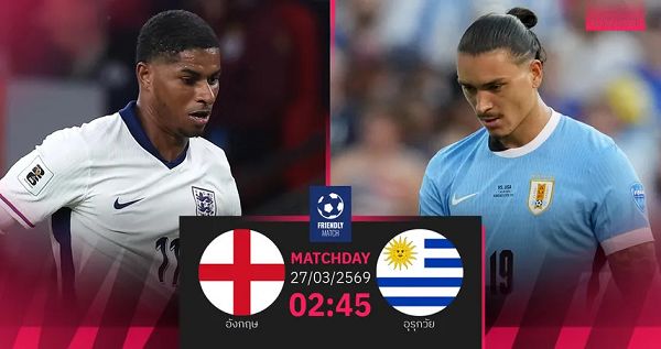7M-วิเคราะห์บอล อุรุกวัย vs อังกฤษ 27 มี.ค. 69 : "สิงโตคำราม" ทดลองขุมกำลังก่อนศึกบอลโลก