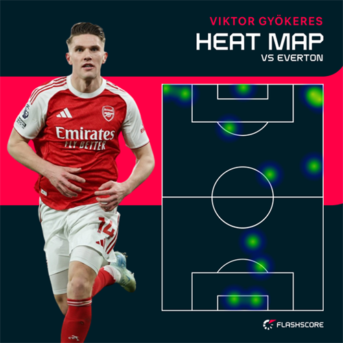 แผนที่ความร้อนของวิกเตอร์ กยอเคเรสในเกมกับเอฟเวอร์ตัน